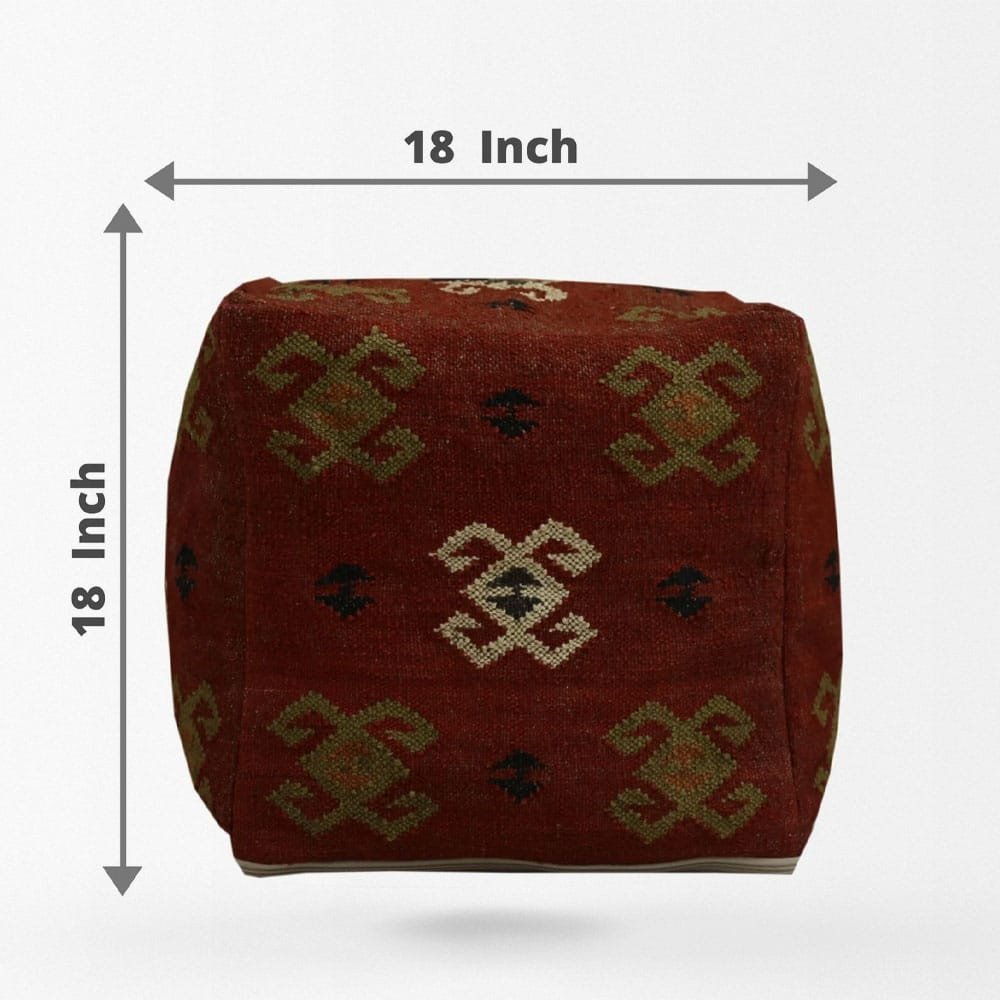 Infuse Rustic Elegance with Our Handwoven Red Wool Kilim Pouf